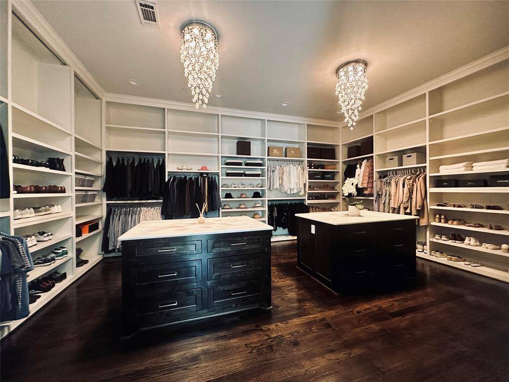 FIRST FLOOR: Large primary bedroom suite with HUGE 21 X 18 closet, Library-Study, Amazing Chef's kitchen, Wet Bar, Formal Dining & Living, Mud & Utility room. The Great Room has fabulous views of the back yard with its outdoor living area & kitchen. All of the first floor & the patio are equipped with a sound system and speakers.
