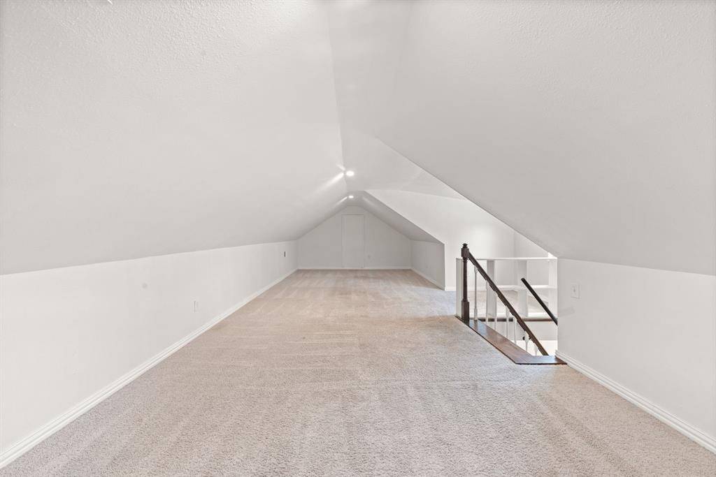 Inside, freshly painted walls, hardwood floors, tiled living areas, and recessed lighting set a warm, comfortable tone. The kitchen is well-equipped with stainless steel appliances, a gas stove, Whirlpool dishwasher, Frigidaire refrigerator, under-cabinet LED lighting, abundant cabinetry, and a cold water filter and it flows naturally into the dining area. A standout feature: the modern Jefferson alternating tread staircase with sleek stair rails leads to an upstairs flex space loft, giving you a versatile bonus room, home office, studio, playroom, or teen retreat with its own vented AC.