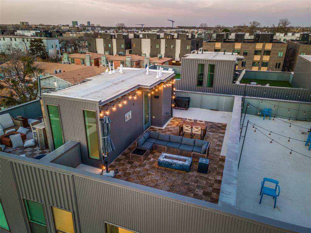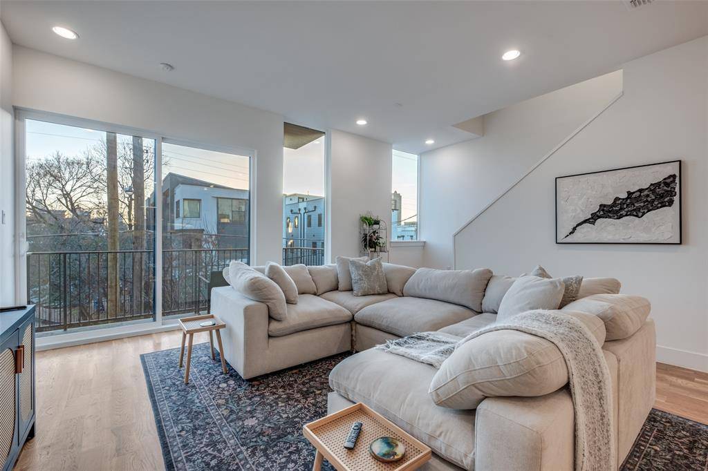 Enjoy breathtaking skyline views from the spacious 4th floor roof-top and an unbeatable lock-and-leave lifestyle in the heart of Dallas. This row of townhomes was designed for today's modern homeowner by award-winning architects, Far + Dang. The exquisite finish-out includes Bosch appliances, solid-oak nail-down hardwood floors, quartz countertops, Nobilia German cabinets with soft-close hinges, tankless water heaters, EV charging outlets, smart home features, pre-wiring for optional fans or speakers and relaxation-inspiring five-fixture master baths with double shower heads. The residence showcases a gated front yard, gated driveway, soaring ceilings, expansive windows that flood the home with natural light, a private balcony and thoughtfully curated finishes throughout. The open-concept layout creates an effortless transition between kitchen, dining, and living spaces—ideal for hosting gatherings or enjoying quiet evenings at home.