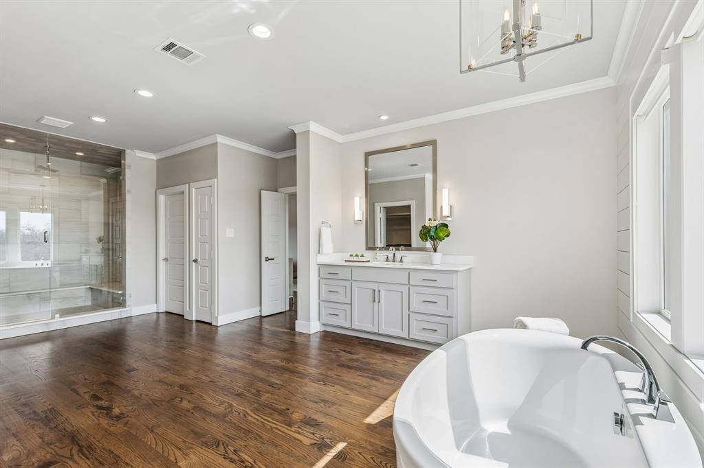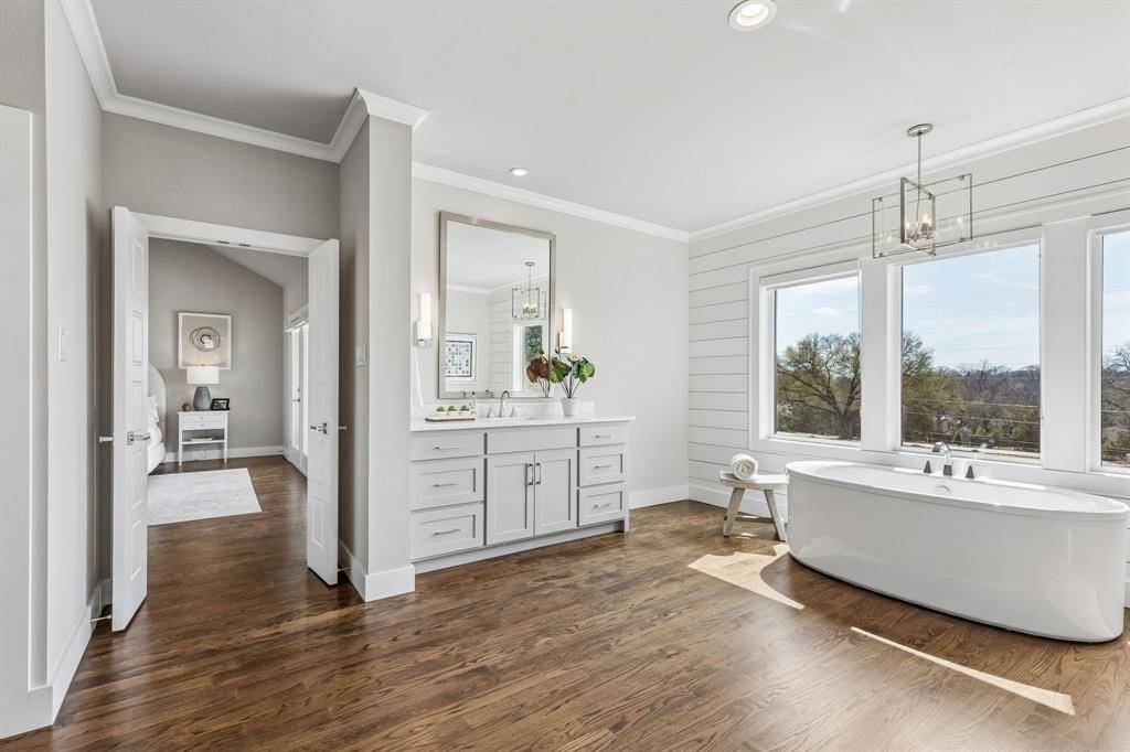 The chef's kitchen is designed for both everyday living and entertaining, complete with a Thermador commercial range, built-in refrigerator, vent hood, oversized walk in pantry, and bar room with ice maker and beverage fridge. The adjoining living room is anchored by a fireplace, custom built ins and surrounded by oversized windows that overlook the back yard and golf course. Upstairs, the luxurious primary suite retreat offers a private balcony with sweeping golf course views, a spa-like bath, and an expansive custom closet. Thoughtfully designed for comfort and flexibility, the main level includes a downstairs ensuite bedroom, a private office, and wide hallways that enhance the home's open feel. Upstairs, two split bedrooms and a spacious game room with wet bar provide the perfect setup for family and guests. Outdoor living is just as impressive, with a covered patio featuring a built-in grill and refrigerator, professional landscaping, and peaceful golf course surroundings. Ideally located in highly sought after Lakewood Elementary, near White Rock Lake and just minutes from top-rated schools, shopping, dining, and Lakewood Country Club.