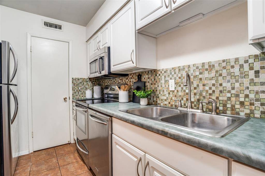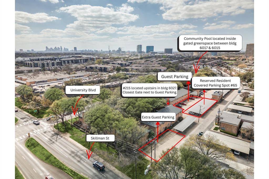 Beautiful well-maintained garden-style condo in the hidden gem of La Fontaine. Inside the gates, underneath a canopy of trees, you'll find a quiet, peaceful setting with landscaped gardens and fountains. This 2nd floor condo is a corner unit with excellent natural light! Open, spacious floorplan has rich hardwood flooring in living and dining, with plush, upgraded carpet in bedrooms, newly replaced Feb 2026. Both Bedrooms have attached full baths. Spacious closets and good storage space throughout! Kitchen has a french-inspired color palette, white cabinets, SS appliances and good-sized pantry! Washer and Dryer in Unit. Assigned Covered Parking Spot is Close to Entry Gate, Reserved Spot #65. Generous amount of guest parking available. Private Community Pool is one building over between 6017 and 6015. Lock and Leave Lifestyle in the heart of Dallas, walking distance to Central Market, Ridgewood Trail. Convenient access to Greenville Ave, SMU, Northpark!