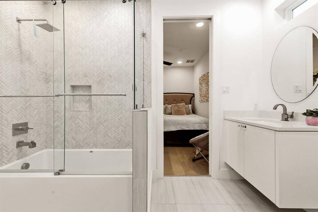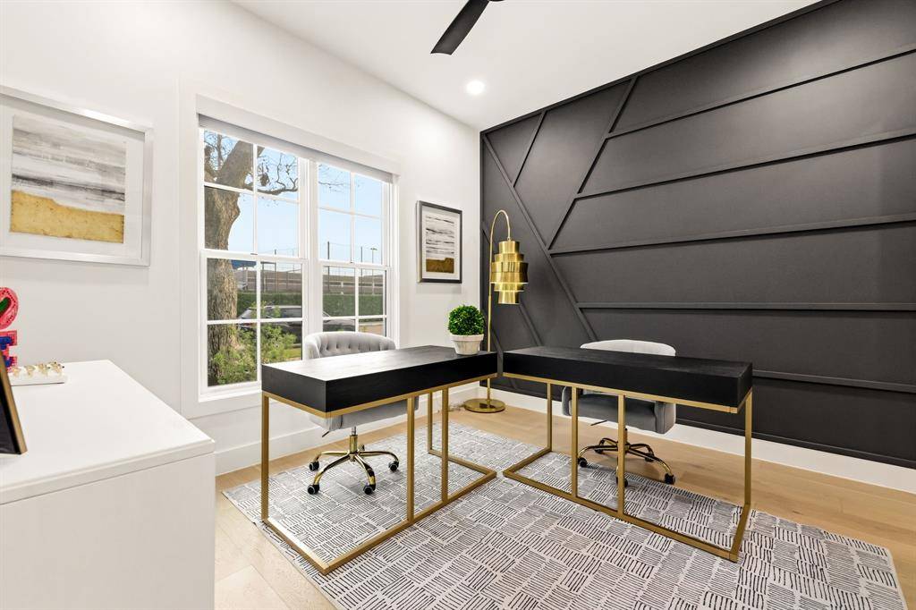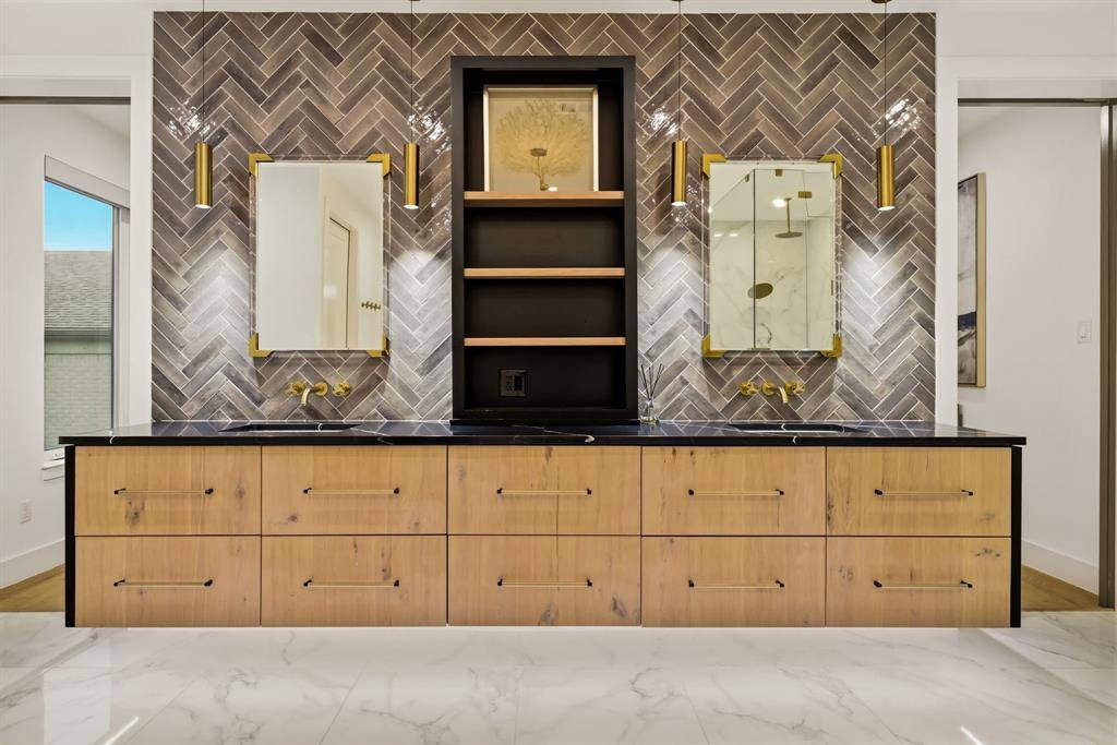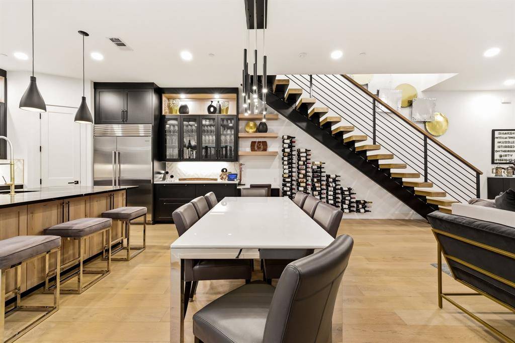 Modern elegance and luxurious living come together in this beautifully designed SFA home with a thoughtful floor plan in coveted HPISD. Situated on Druid, a quiet one-way street near Highland Park High School, the location offers exceptional walkability while avoiding heavy through traffic. A light-filled entry and open floor plan welcome you with 6-inch white oak floors, abundant natural light, ample storage, and sophisticated designer finishes throughout. The chef's kitchen features a 48-inch Wolf range with six gas burners and double ovens, ventless Vent-A-Hood, Wolf microwave, Sub-Zero refrigerator and freezer, walk-in pantry, custom cabinetry, and quartz countertops. The open dining and living areas include a fireplace and Windsor sliding doors leading to outdoor living, creating an ideal setting for everyday living and entertaining. The first floor offers a flexible guest suite currently used as an office, complete with custom floating shelves and an ensuite bath with shower. The shelving can easily be reconfigured to create a walk-in closet, allowing the space to function comfortably as a guest bedroom. A striking floating staircase leads to the second level with two ensuite bedrooms and a luxurious primary suite featuring dual vanities, European fixtures, porcelain tile, oversized walk-in closet, and towel warmers for a spa-like retreat The third floor features an ensuite bedroom and two versatile living spaces, currently used as a family room and game room, offering flexibility for media, play, fitness, or work. A large storage area off the game room extends into attic space, providing exceptional storage. Additional highlights include a two-car garage, fully encapsulated foam insulation, Jeld-Wen windows, and durable 2x6 construction. Enjoy walkability to Highland Park High School and the shops and restaurants along Lovers Lane, offering the perfect combination of luxury, comfort, storage, and location.