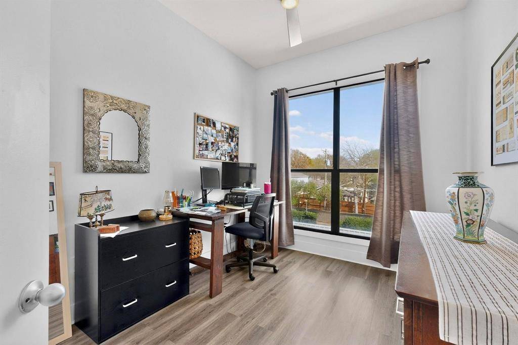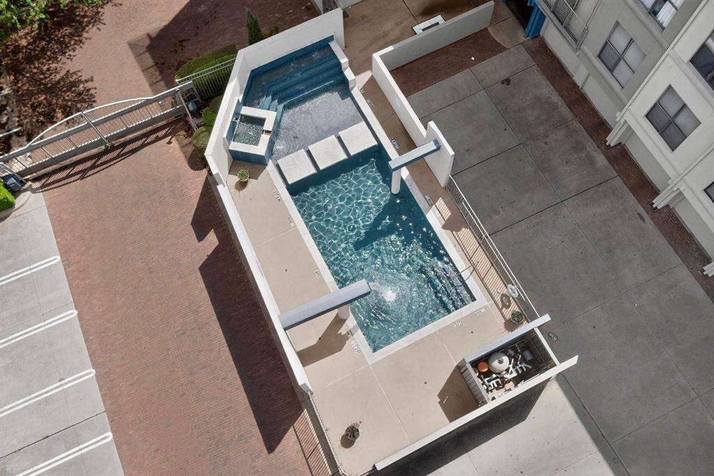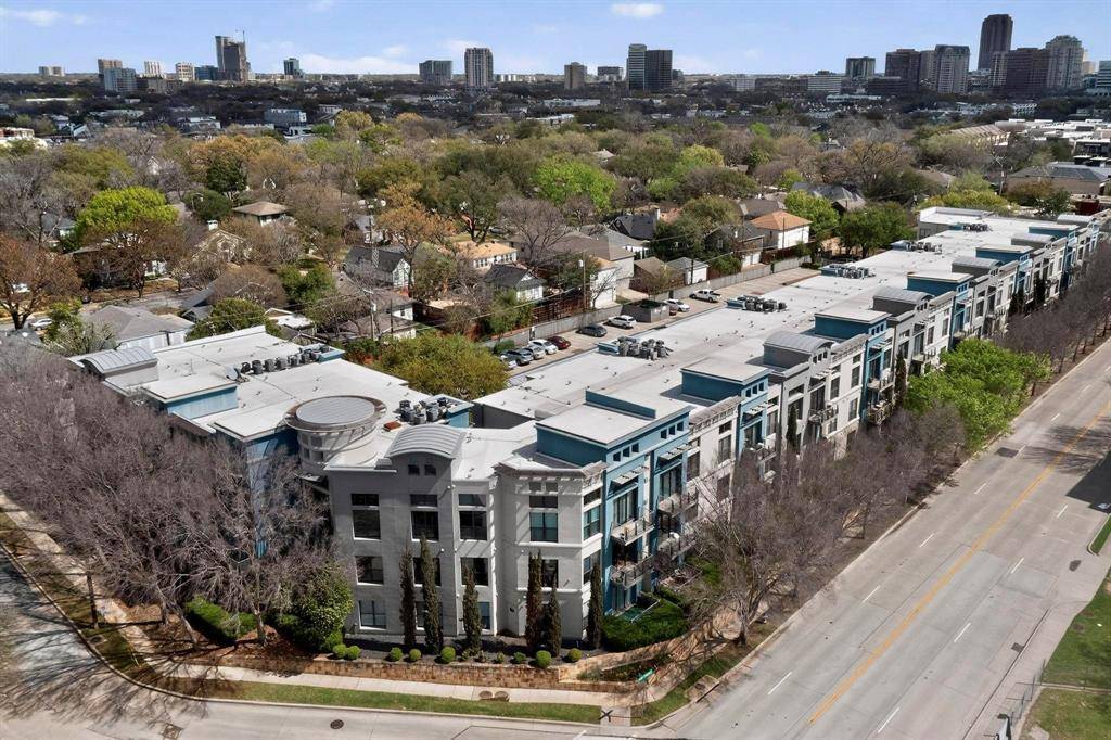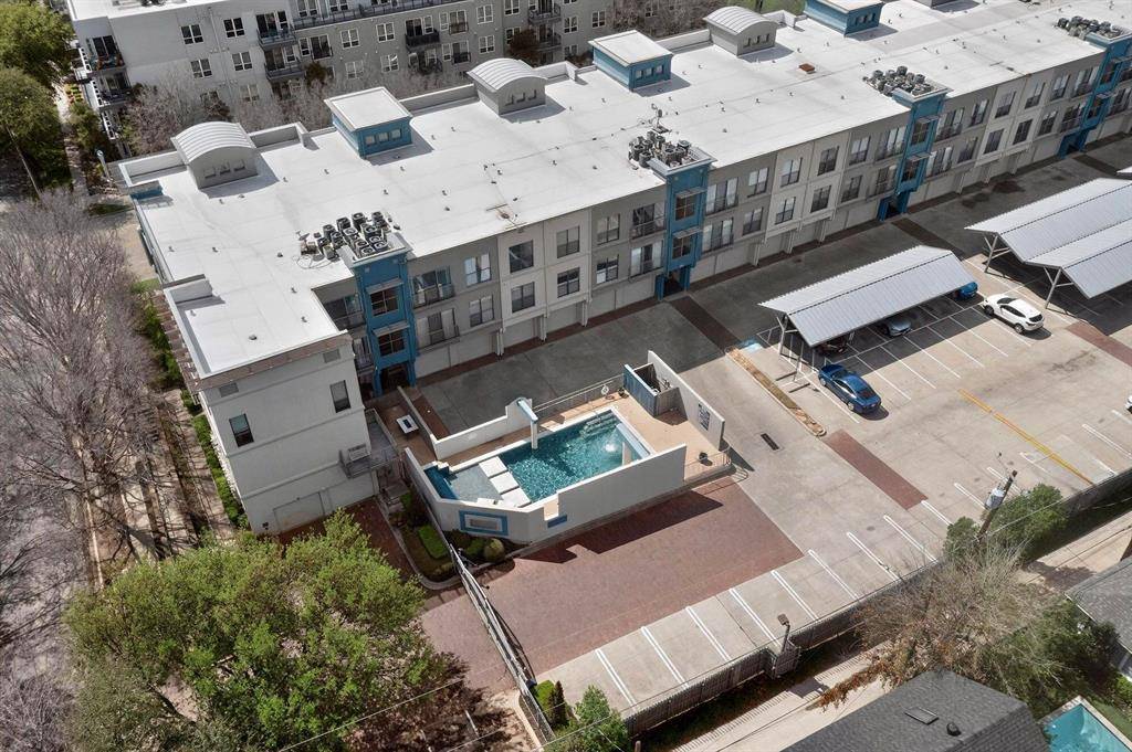 Courtyard-facing corner unit featuring automatic blinds & a highly private layout in an amazing Uptown Dallas location! As a top-floor end unit, this condo has no neighboring unit immediately beside or in front & does not align directly with the unit across the hall, providing an extra level of privacy AND quiet. A bright, welcoming floor plan opens to the kitchen & separate dining area, complete with a large kitchen island, pendant lighting & SS appliances. High ceilings & oversized windows allow for tons of great natural light throughout, plus a sliding door opening to a Juliet balcony in the living room, complete with automatic shades. The bathroom is extremely spacious & has multiple entries for easy access from the primary bedroom & main spaces, featuring dual sinks & a huge walk-in closet. Second bedroom could be used as an office, studio, workout space or guest room. Utility closet with full-size washer & dryer area can be closed off when not in use. Amenities in this gated community include covered parking, a saltwater pool, gym & dog run—the full package! Right down the street from Craddock Park, 5 minutes to Love Field airport & steps from the heart of Oak Lawn, Downtown Dallas, Arts District, Hospital District & West Village—you won't want to miss this fabulous condo in an unbeatable location.