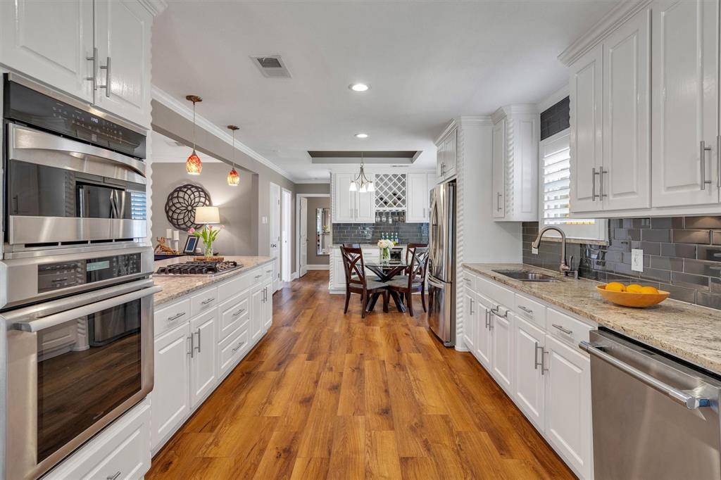 Discover refined comfort and effortless style at 7424 Meadow Oaks, where thoughtful updates and elegant finishes create a home designed for both relaxed living and sophisticated entertaining. An expansive open floor plan welcomes you inside, offering a seamless flow between the main living, dining, and kitchen spaces. Beautiful luxury vinyl plank flooring stretches throughout the home, delivering both durability and modern elegance, while classic plantation shutters add a timeless architectural touch. The kitchen is both inviting and functional, featuring stainless steel appliances, a charming breakfast nook for casual mornings, and a built-in bar area perfect for mixing cocktails or enjoying a glass of wine. Additional flexible spaces include a dedicated home office and a bonus room that can easily function as a kids' playroom, pool room, or even an additional bedroom, offering versatility to suit various lifestyles. The spa-like primary bathroom includes a soaking tub and a large rain shower, creating a calm space to unwind and recharge at the end of the day. The heart of the home opens to a stunning backyard retreat. Step outside to your private outdoor oasis, where an inviting swimming pool and covered patio create the perfect setting for warm Texas afternoons or weekend entertaining. A new roof was recently installed, adding peace of mind and long-term value. Centrally located in the Crest Meadow Estates subdivision, the home also offers easy access to major highways and is just minutes from NorthPark Center and Downtown Dallas, placing some of the city's best shopping, dining, and entertainment within convenient reach.