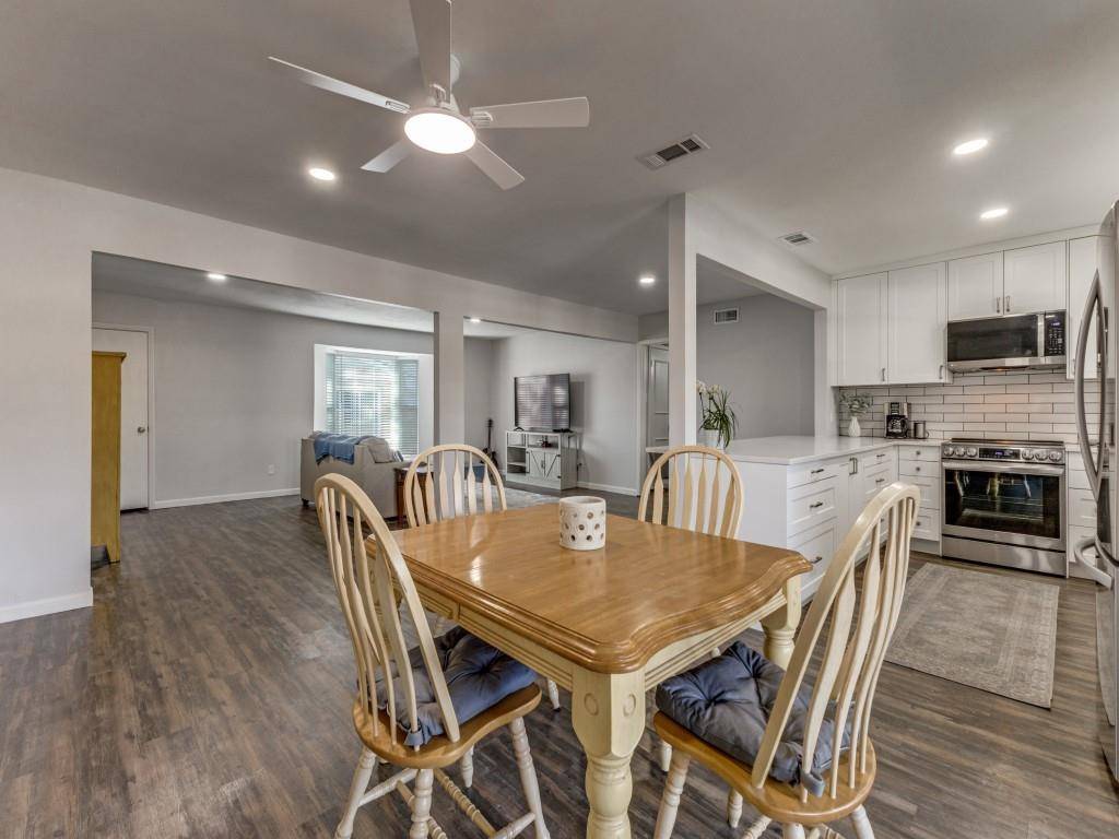 Additional updates include the removal of popcorn ceilings, new baseboards, doors and door frames, window treatments. A new French door out to the patio was installed this year and all ceiling fans updated.