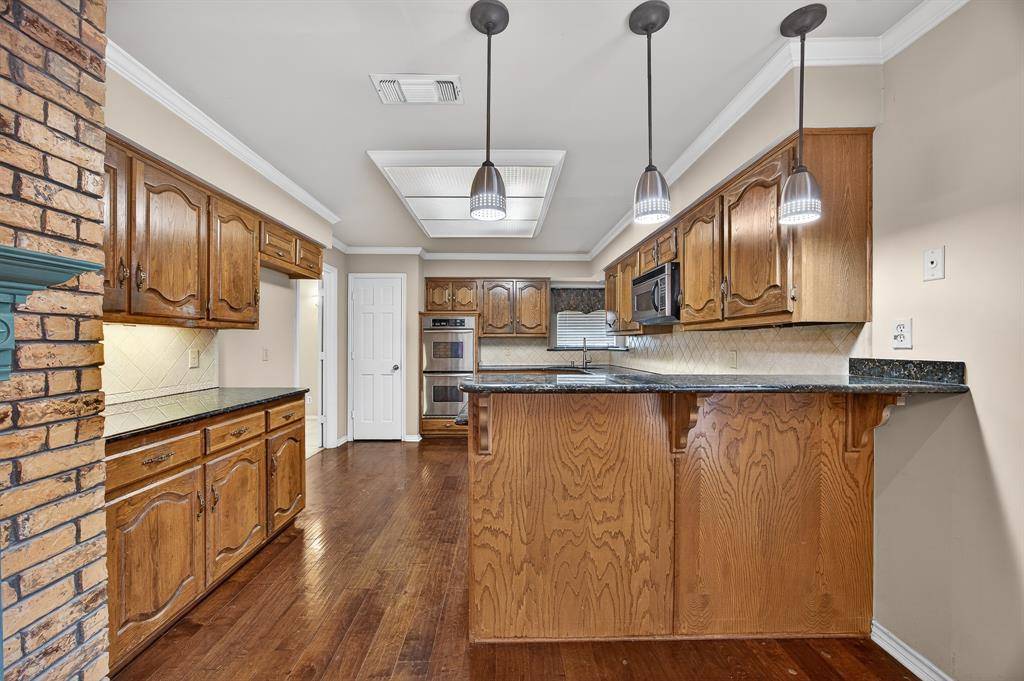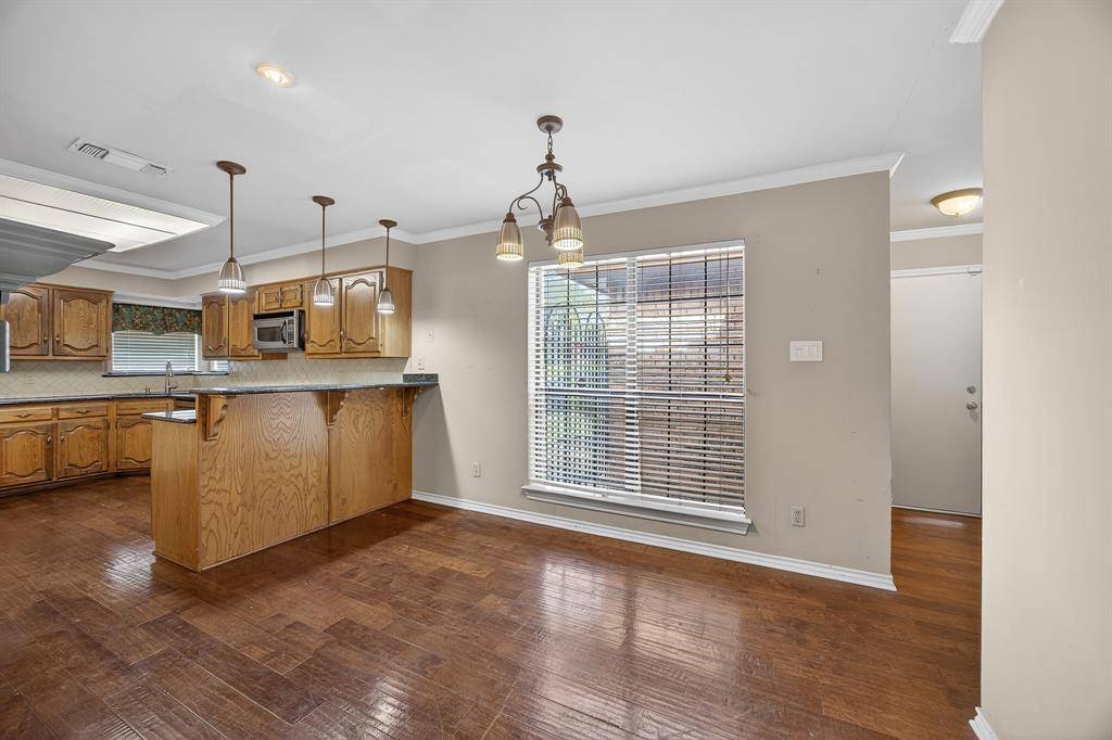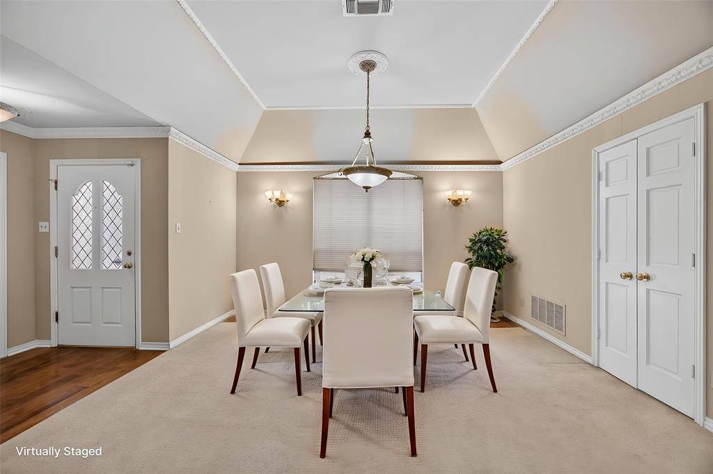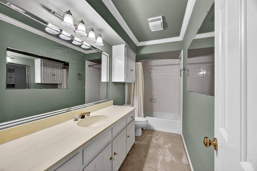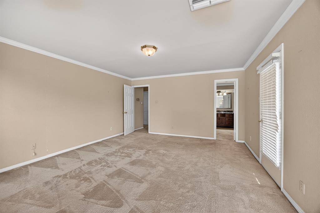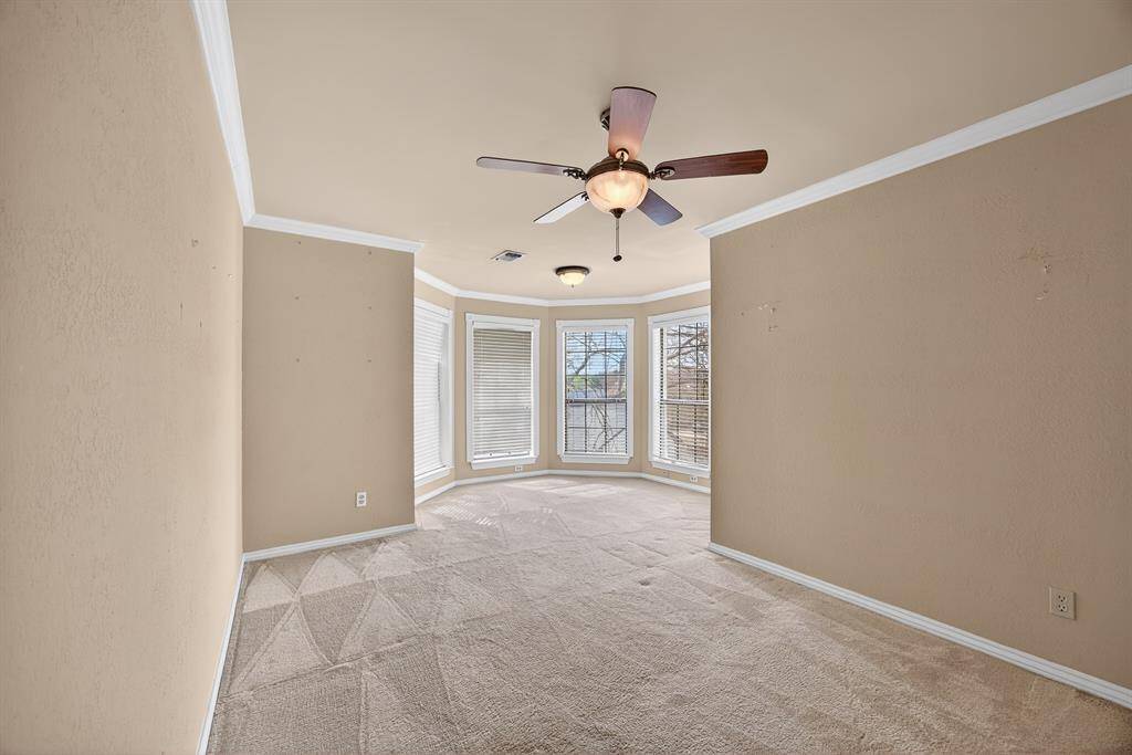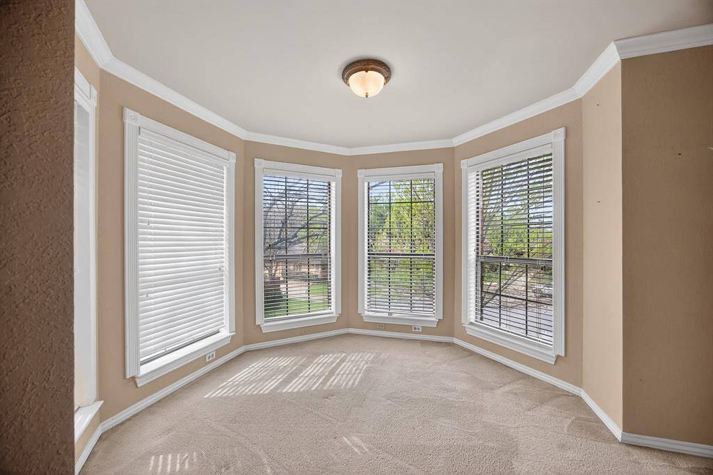 Original owner custom-built home on an oversized corner lot in a cul-de-sac offering quality construction and generous room sizes. Interior features include ash paneling in the living room and staircase, a two-sided gas fireplace and abundant closet space throughout. Primary bedroom and one secondary bedroom include private sitting areas, offering flexibility for any lifestyle. The primary bath has been updated with custom cabinetry, a new shower, and marble flooring. Recent improvements include a roof replaced in 2019 with a 40-year life, one AC unit replaced in 2022, new dishwasher, and a 22,000-watt natural gas Generac whole house generator installed in 2021. Exterior highlights include an oversized backyard, large covered patio with new fans, rock water feature, privacy fencing and shrubs, plus a gated driveway with extended parking for RV, boat, or multiple vehicles. Conveniently located less than five miles from Dallas Fort Worth International Airport and within walking distance to the beautiful Victoria park.