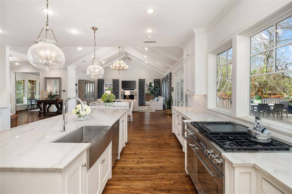 Set on an oversized, tree-filled lot on a country-style lane, this beautifully designed 6-bedroom, 5-bath home offers the ideal blend of space, functionality, and charm in the heart of Bluffview (Shorecrest Estates). Desirable pier-and-beam construction elevates the home above an expansive backyard, complete with a 900+ sf deck for al fresco dining or sitting by the fire. A welcoming front porch leads into generous living space designed for both everyday living and entertaining. The main level features a formal dining room, formal living or study, and a spacious living area that flows seamlessly into the gourmet kitchen. Outfitted with premium Sub-Zero, Dacor and Samsung appliances, a large center island, and ample storage, the kitchen offers a clean, functional layout and sweeping views of the backyard. Tucked privately at the rear of the home, the primary suite offers a true retreat with its own fireplace and direct access to the charming backyard deck. A secondary guest suite is also on the first floor, along with a butler's pantry and fully upgraded laundry room featuring custom cabinetry and new tile. A wall of custom cabinets behind the kitchen provides flexible storage alongside a full beverage center. Upstairs, a spacious second living area, enhanced with a wet bar with fridge, icemaker and dishwasher, opens to the rooftop outdoor deck. Four additional bedrooms and a versatile bonus room, ideal for a media room, playroom, or home office, provide flexibility for a variety of lifestyles and needs. Additional features include Ecobee smart thermostats, app-enabled security system, fully hardwired video monitoring system and a new front fence already wired for an electric gate. Sought-after public and private schools, and the shops and dining of Lovers Ln. are just a short drive away. With incredible outdoor living space in a peaceful, private setting, this move-in-ready home offers an exceptional opportunity in one of the city's most picturesque neighborhoods.