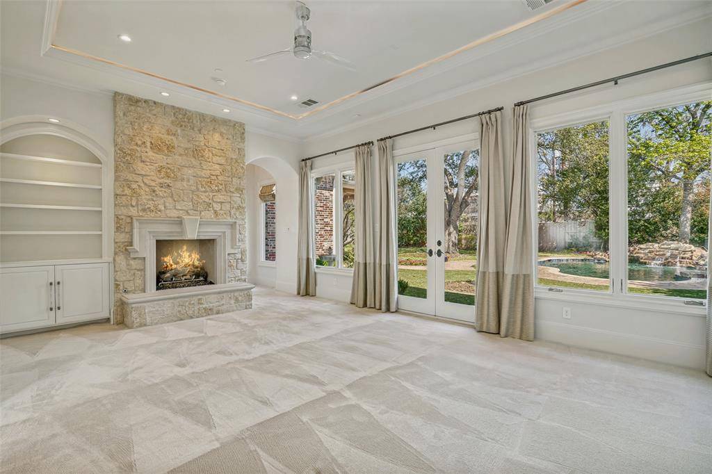 Outdoors the covered veranda awaits beholding an outdoor fireplace, grilling station, a lagoon-style heated pool-spa-cascading waterfall —perfect for evenings under the Texas sky.