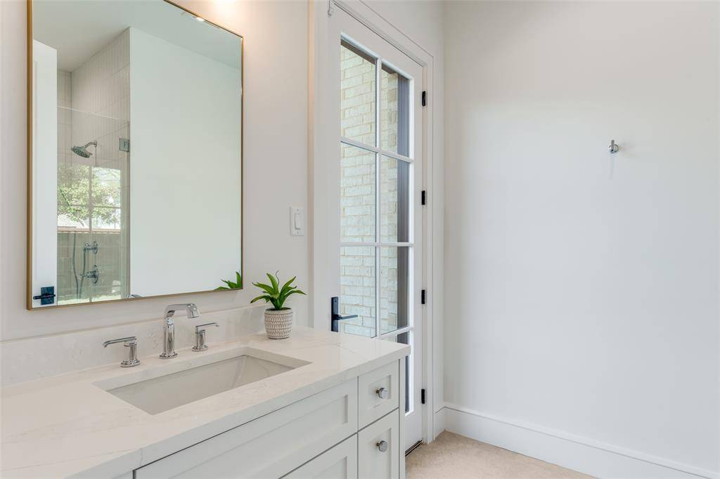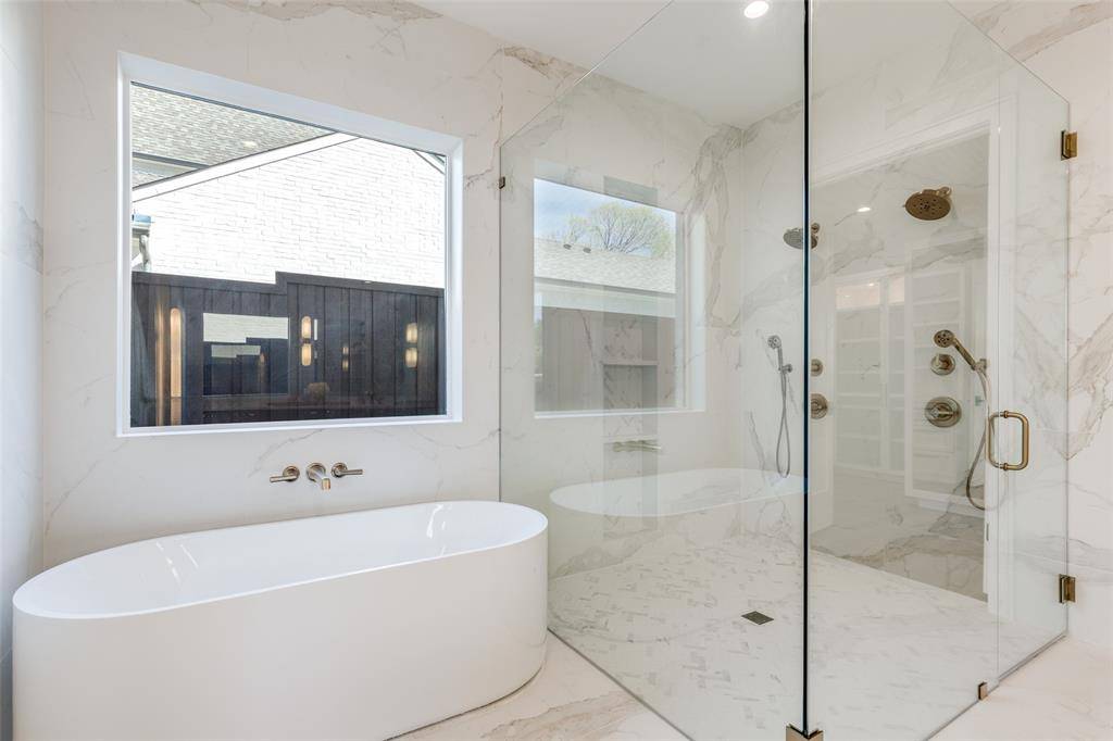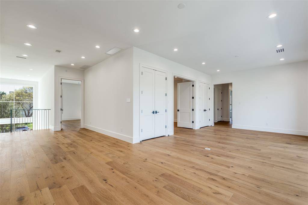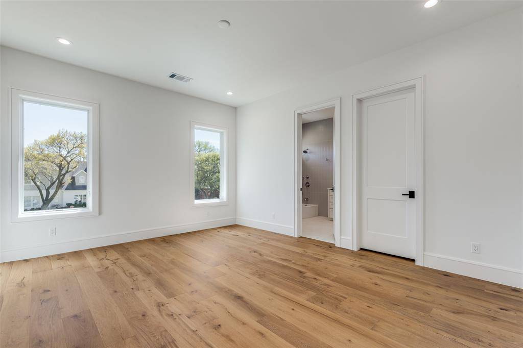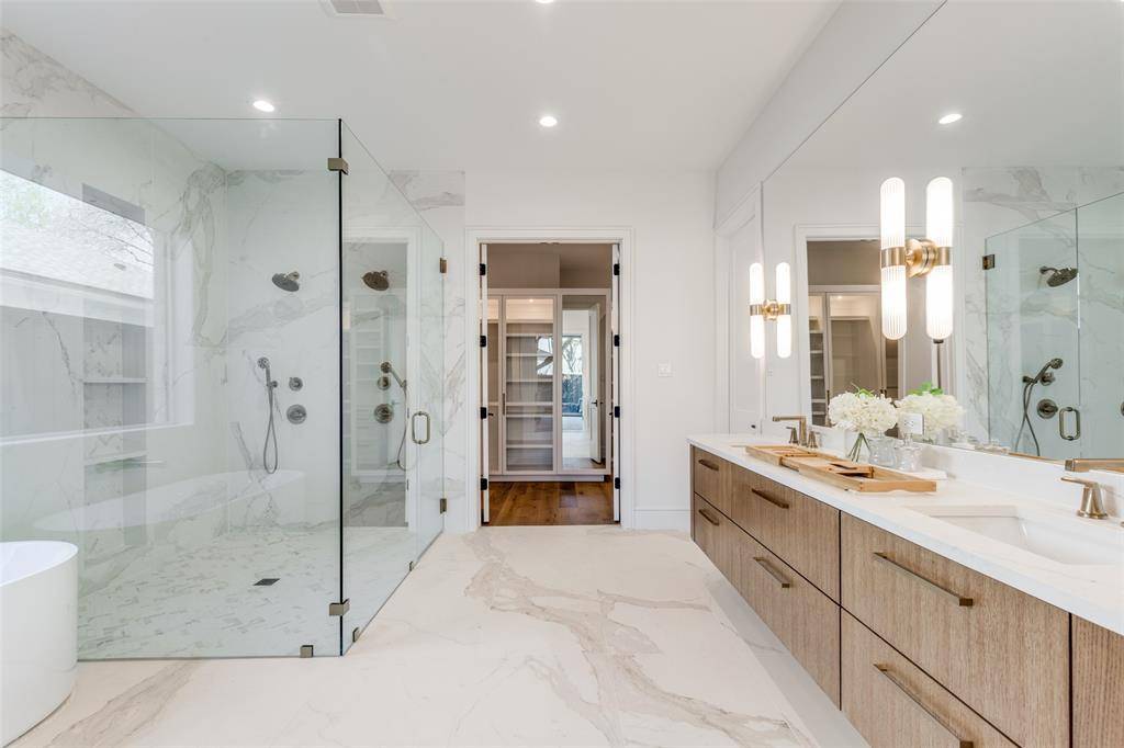 One-of-a-kind contemporary luxury home by Toby Reder Custom Homes in collaboration with Chellyanna Custom Homes, ideally located 6336 sq. ft., this thoughtfully designed residence offers 6 bedrooms and 6.2 baths with an open floor plan ideal for everyday living and entertaining. The first floor features a private study, guest suite, and luxurious primary retreat with spa-inspired bath. The gourmet kitchen includes Thermador appliances with double ovens, double dishwashers, an oversized island, custom cabinetry, butler's pantry, and breakfast nook overlooking the backyard and pool area. Formal dining and a wet bar create ideal entertaining spaces. Upstairs offers four en-suite bedrooms, a large flex space, and a bonus room perfect for a media room, gym, or playroom, along with a spacious balcony terrace. White oak flooring and abundant natural light highlight the home's modern design. A covered patio overlooks the pool and backyard with room for an outdoor kitchen. Oversized three-car garage. Ideally located near Dallas' premier private schools, dining, shopping, and major thoroughfares.