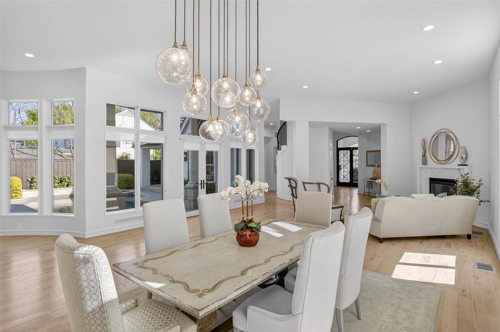 Designed for effortless entertaining, this exceptional Preston Hollow residence showcases top-of-the-line finishes, wood floors throughout and oversized windows that flood the interior with natural light. A 2-story foyer & elegant formal spaces flow seamlessly into the main living areas - each framed by a wall of windows with sweeping views of the resort-style courtyard, pool, and outdoor living spaces. Built-in speakers elevate both indoor and outdoor gatherings.