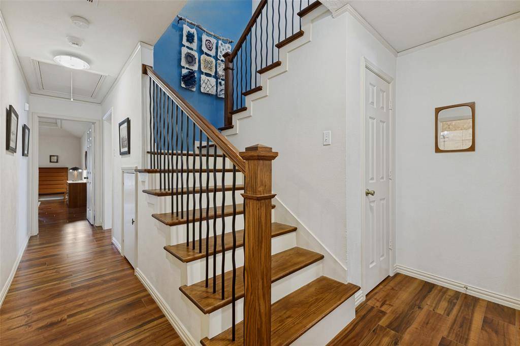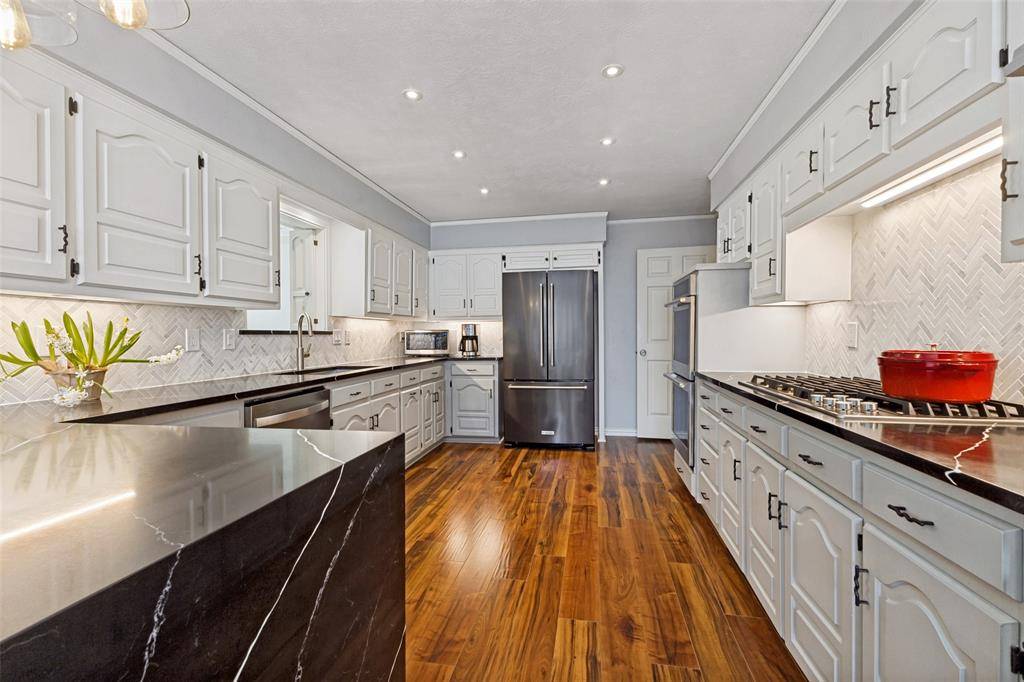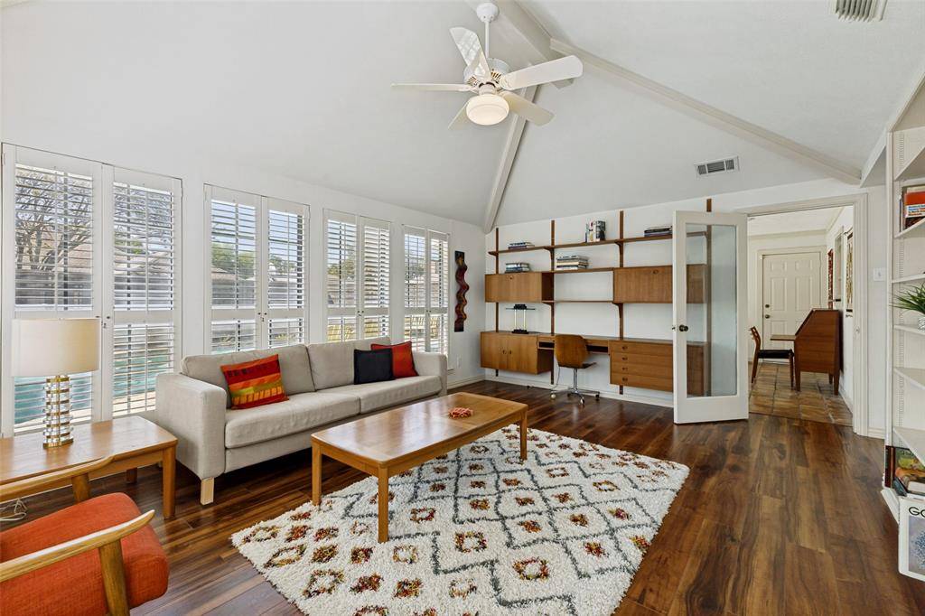 RICHARDSON SCHOOLS! BRENTFIELD ELEMENTARY! PRESTONWOOD! With 3 spacious living areas, four bedrooms and recent updates to the kitchen and baths, this house has it all. Hardwood floors throughout most of the downstairs accentuate a neutral palette that works for any design style and the floorplan works on so many levels meeting the needs of today's families. The primary living and dining room, at the front of the house flow seamlessly for ease of entertaining. The well equipped kitchen was extensively remodeled in 2022 featuring GE Monogram double ovens with wi fi capability and top oven convection, a Jenn Aire 5 burner gas cooktop, Whirlpool dishwasher and loads of storage and prep space for all the essentials! The delightful family room, just steps away, is bathed in sunlight from windows on 3 sides of the room. Living area 3 is adjacent and would make a wonderful home office with entry from the garage. Sought after but rarely found, is a second bedroom on the first level. Currently configured as an office, this bedroom has a full bath steps away, creating a perfect guest suite. The primary suite enjoys a totally remodeled bath (2019) with stunning shower and 3 walk-in closets! Two bedrooms share an updated bath upstairs. A lovely perennial garden is visible from the breakfast area and can be closed off to the pool area for child safety. This house has all the right rooms, in all the right places with everything you want and all the things you need to make this address your NEW address!