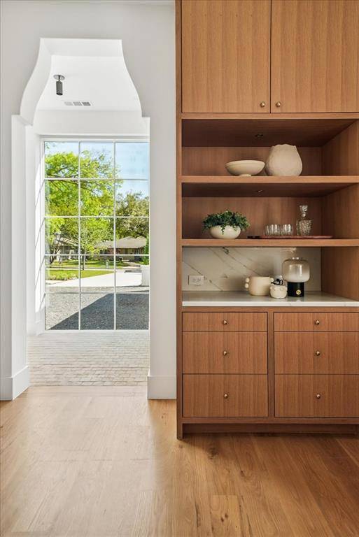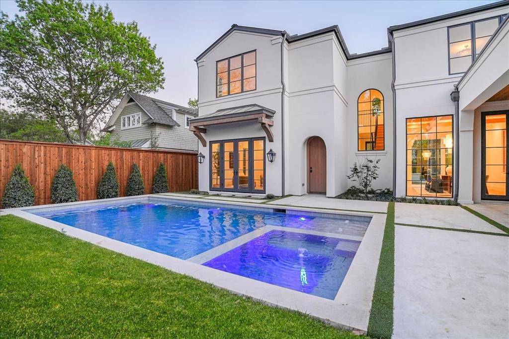 New Construction in the fairway of Preston Hollow. Discover a harmonious blend of timeless elegance and contemporary design at 6031 Lupton Dr. Nestled on a .43-acre lot in the prestigious Fairway of Preston Hollow, this 7,009-square-foot estate features 5 bedrooms, 5.2 baths, and a three-car garage, offering both luxury and comfort in every detail. The exterior draws inspiration from the iconic Santa Barbara style, merging the romance of Spanish Revival architecture with a fresh coastal aesthetic. Handmade details transition seamlessly from the outside in, with corbel arched openings, beamed ceilings, and warm wood tones enhancing the home's inviting atmosphere. The interiors are adorned with limestone and plaster fireplaces, custom vent hoods, and decorative cement tiles, all contributing to the classic Mediterranean ambiance. Inside, rift-cut white oak cabinetry, warm white walls, and a mix of travertine and quartzite stone create a modern yet welcoming feel. The thoughtful balance of polished nickel with wrought iron and bronze tones adds a touch of sophistication, ensuring the home retains its Mediterranean roots while embracing contemporary style. This home also boasts two laundry rooms for added convenience, a dedicated office space, and expansive living areas perfect for both relaxation and entertaining. The backyard is an inviting retreat featuring a covered patio, built-in outdoor grill, and a sparkling pool, perfect for relaxing or entertaining. 6031 Lupton Dr. is not just a home; it's a masterpiece of design, where traditional craftsmanship meets modern luxury. Experience the best of both worlds in this exquisite Preston Hollow home.