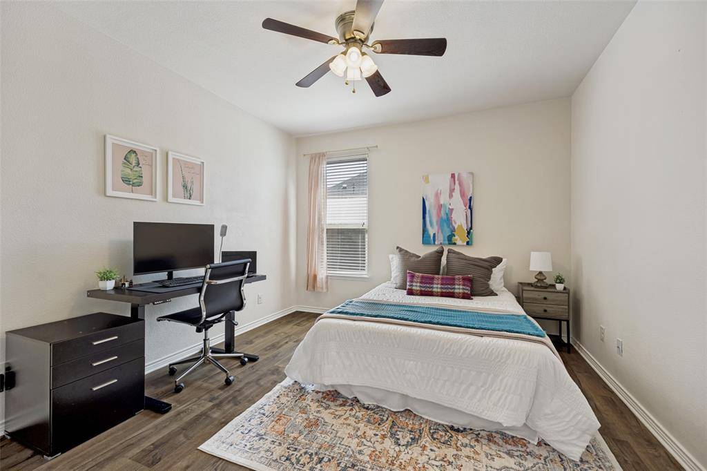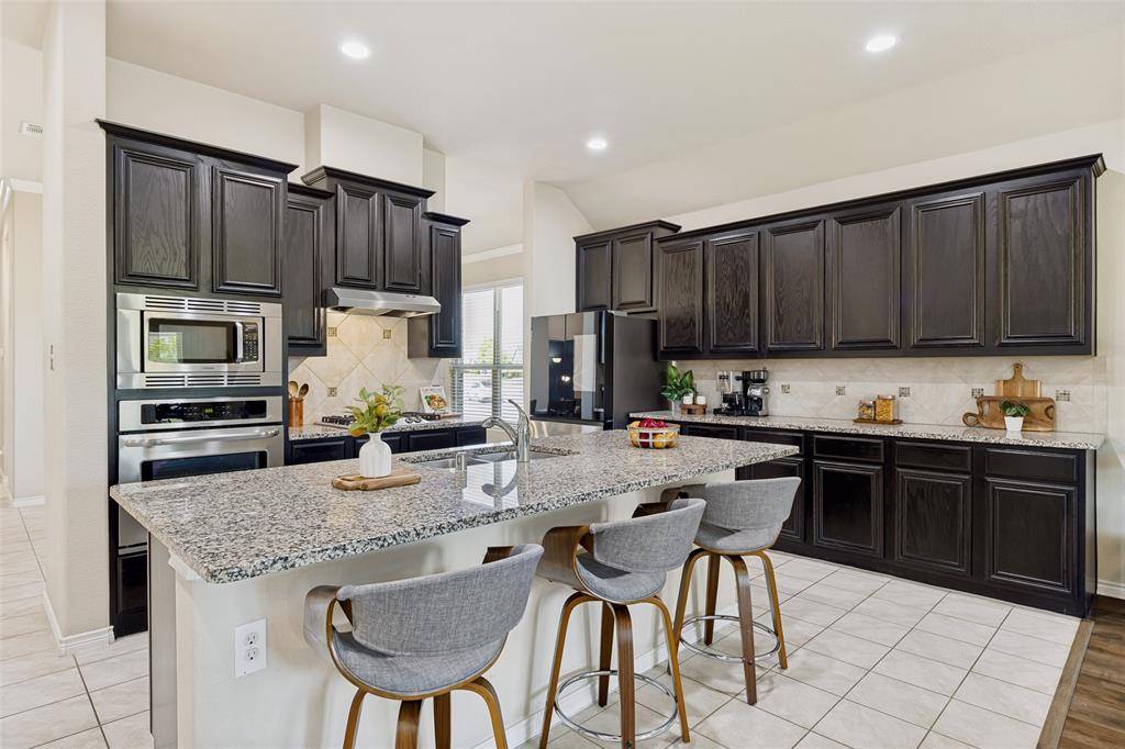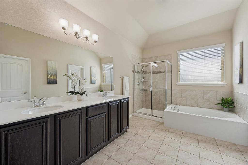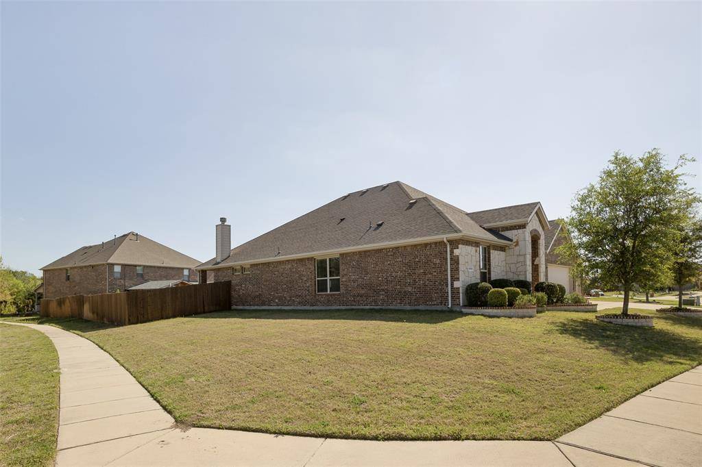 Immaculate, single-story home nestled on a spacious .266-acre corner lot with a 3-car garage. Adjacent to the home site lies a green space with trees that will remain undeveloped. This 2016 home boasts an open and functional floor plan featuring four spacious bedrooms, large walk-in closets, three full bathrooms, and a utility room with ample space for creating a mudroom. An optional Mother-in-Law Suite by the entryway offers an ensuite bathroom accessible through two doors. The entire home is finished in hard-surface flooring, making it easy to maintain and reducing allergens. Natural lighting floods the interior, creating a vibrant atmosphere. A recently installed smart light system controls the kitchen lighting, and modern light fixtures throughout feature LED and energy-efficient light bulbs. The backyard is perfect for gardening, entertaining family and friends, and creating your own retreat. It includes an extended concrete slab for outdoor entertainment and built-in gas and water+drainage connections for future kitchen construction. The home is situated in a quiet neighborhood with easy access to major highways like I-30, George Bush Turnpike, and Hwy 635. You're just minutes from Lake Ray Hubbard, shopping, and dining. Notably, this community doesn't charge MUD or PID taxes. While there are many great features, the standout aspect of this home is its elegant and spacious design, making it a must-see for families seeking a luxurious living experience.