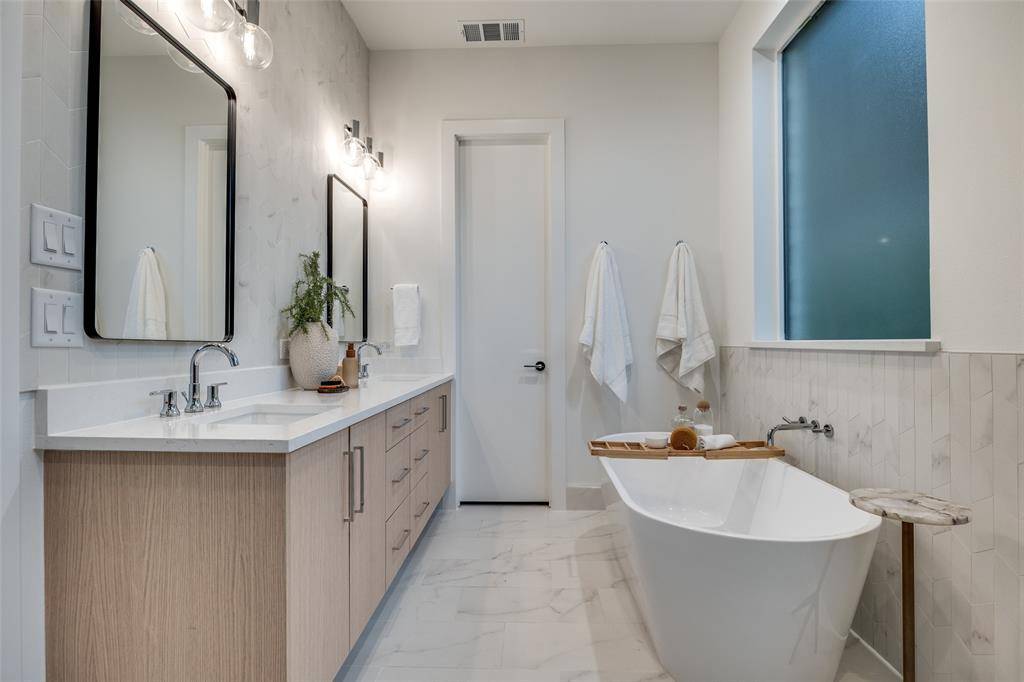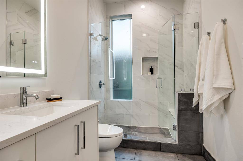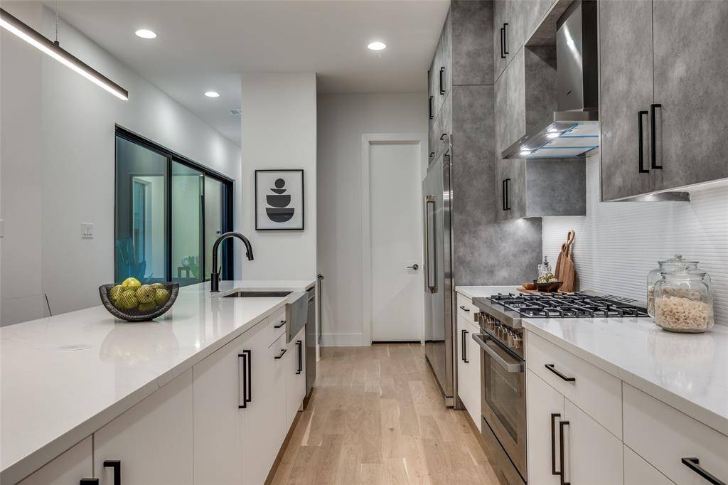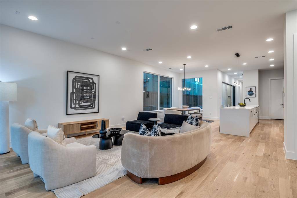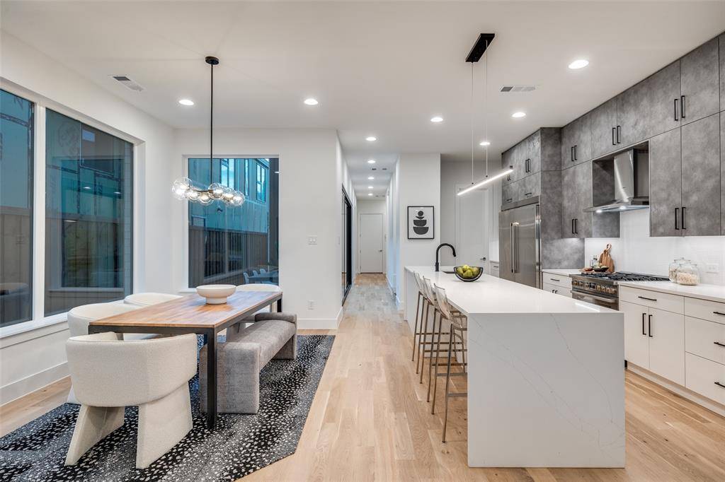 Architecturally striking new-construction SFA in the heart of the Upper Greenville entertainment district. Designed by AIA award-winning architects Far + Dang and built by Cobalt Homes, this contemporary residence blends modern design with exceptional walkability to top restaurants, shopping, trails, and Glencoe Park. Light-filled open floor plan features wide-plank white oak hardwoods, soaring ceilings, and a designer kitchen with custom cabinetry, waterfall island, and Bosch appliances. Offering 3 bedrooms, 3.1 baths, plus a private study and upstairs flex space. Spa-inspired primary suite with freestanding tub and oversized shower. Multiple outdoor living areas include a large gated front yard with a gas fire pit, a covered patio, a side yard, and a third-floor balcony. Smart-home features, a tankless water heater, and premium finishes throughout. A rare opportunity for modern living in one of East Dallas' most vibrant neighborhoods.
